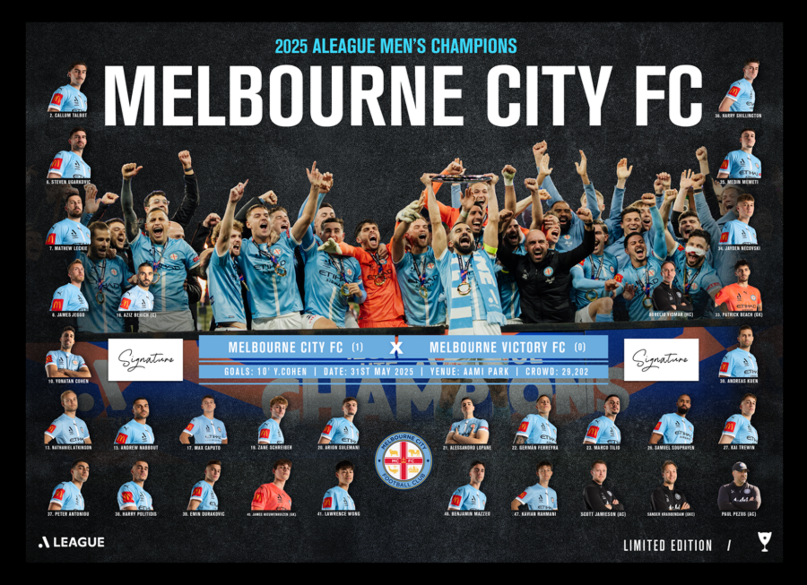 - Personally signed by the Melbourne City FC captain and coach
